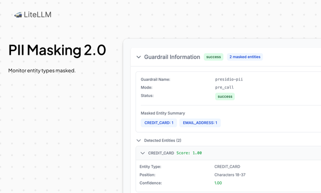 • Presidio Guardrail - Support custom entity types in Presidio guardrail with Union[PiiEntityType, str] - PR #14899